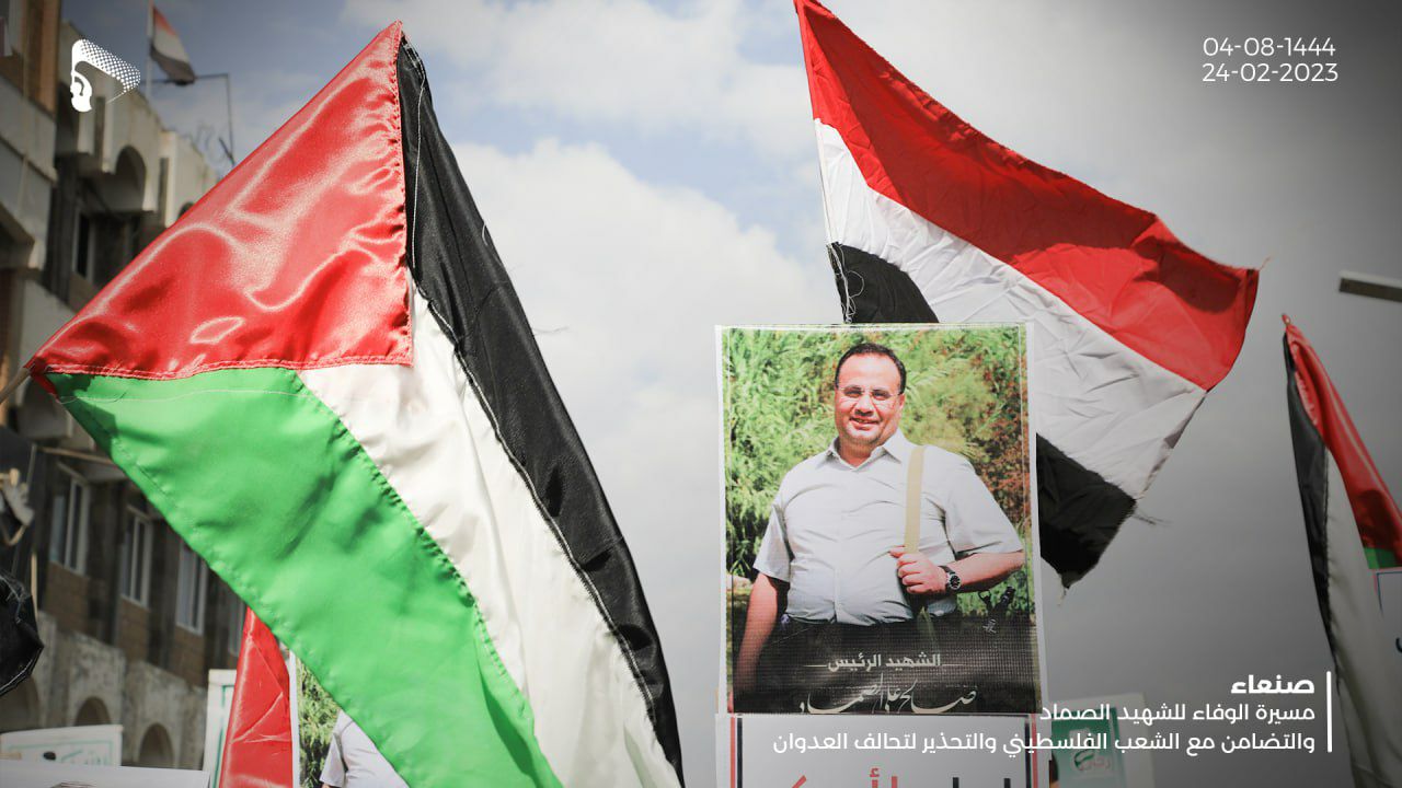 وفي المسيرة الجماهيرية، حيا ممثل حركة الجهاد الإسلامي بصنعاء الدكتور مجدي عزام، خروج هذه الحشود الجماهير الكبيرة للوفاء للرئيس صالح الصماد الذي كان له من اسمه نصيب في الصمود والتضحية.