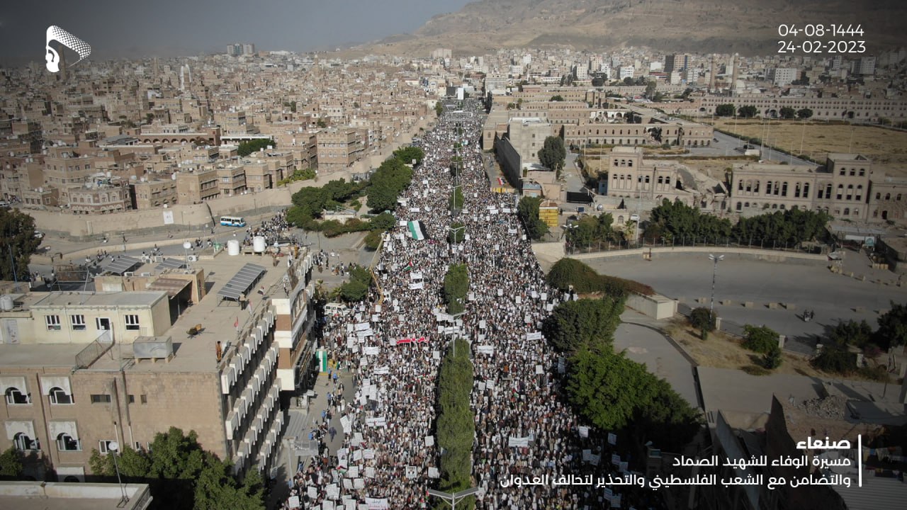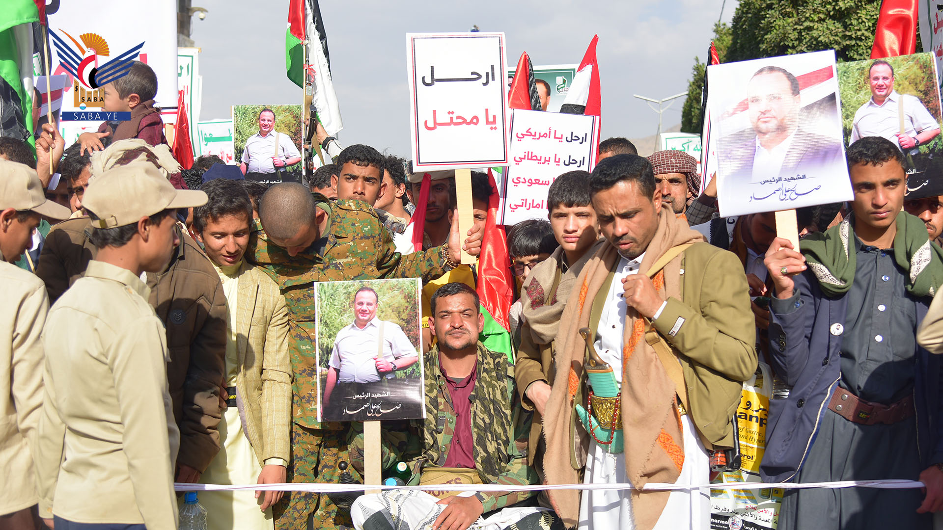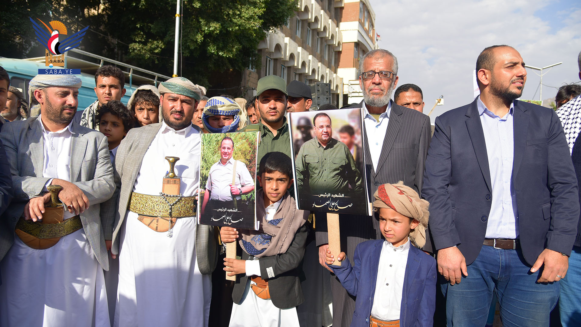 شهدت العاصمة صنعاء عصر اليوم، مسيرة جماهيرية حاشدة، وفاءً للرئيس الشهيد صالح الصماد وتضامناً مع الشعب الفلسطيني، وتحذيراً لدول العدوان.