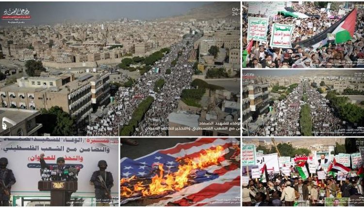 شاهد .. مسيرة كبرى بالعاصمة صنعاء وفاءً للشهيد الصماد وتضامناً مع الشعب الفلسطيني وتحذيراً لدول العدوان (صور + فيديو)