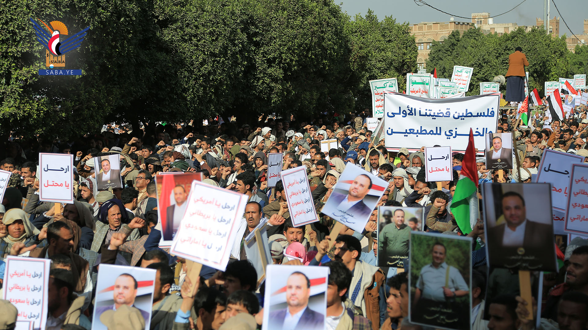 وردد المحتشدون، الشعارات المؤكدة على أن فلسطين كانت وستظل القضية الأولى للشعب اليمني والأمة العربية والإسلامية مهما تخاذل المتخاذلون وطبع المطبعون.. مؤكدين على موقف الشعب اليمني الثابت والمبدئي في التضامن مع الشعب الفلسطيني وقضيته العادلة.