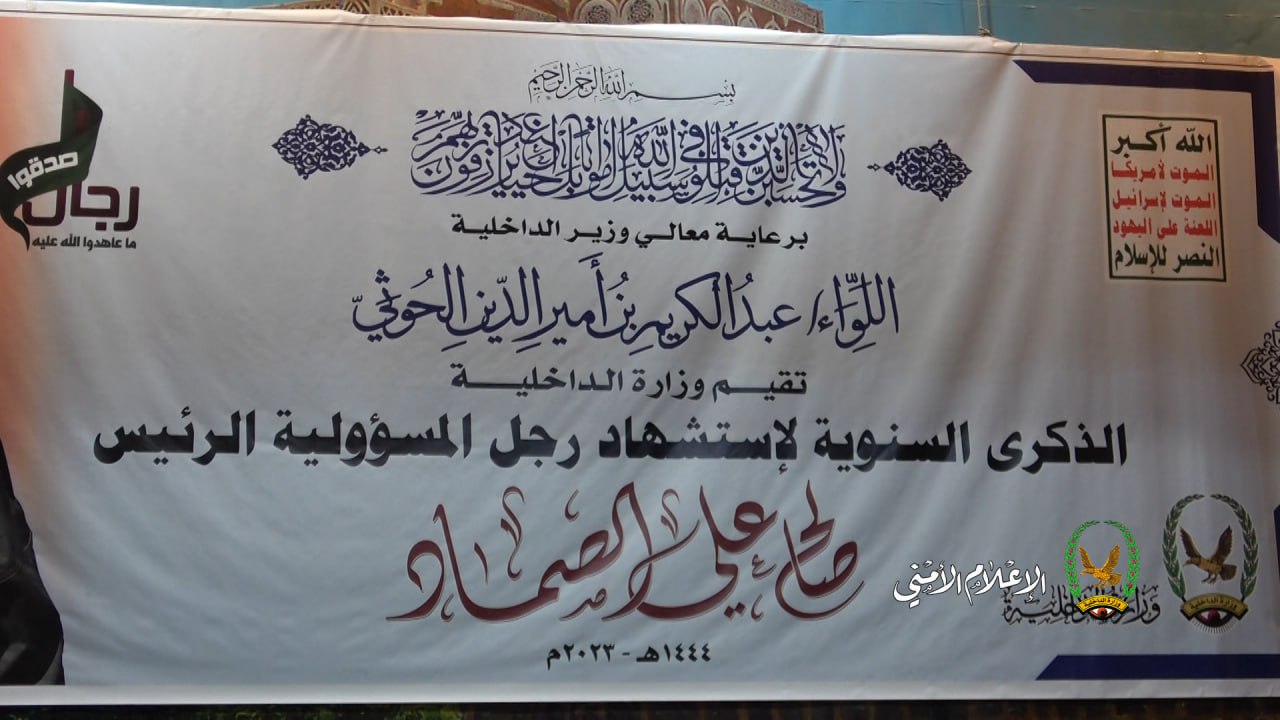 أفق نيوز | نظمت وزارة الداخلية اليوم بصنعاء فعالية خطابية وثقافية إحياءً بالذكرى السنوية للشهيد الرئيس صالح الصماد.