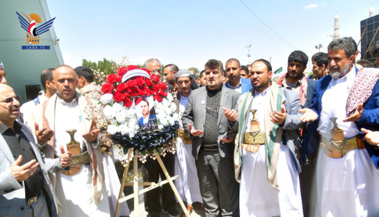 أفق نيوز | وضعت قيادة الهيئة العامة للزكاة اليوم، إكليلاً من الزهور على ضريح الرئيس الشهيد صالح الصماد ورفاقه في ميدان السبعين.