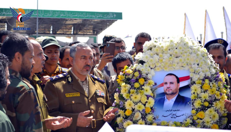وقرأ اللواء عبدالكريم الحوثي ومعه المفتش العام بوزارة الداخلية اللواء عبدالله الهادي ورئيس مصلحة التأهيل والإصلاح اللواء عبدالحميد المؤيد وقيادات أمنية ومدراء الأمن والعموم بالوزارة، الفاتحة على أرواح الشهيد الصماد ورفاقه وكافة شهداء الوطن.