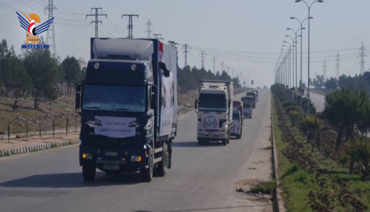 قافلة إغاثية ثالثة من الجالية اليمنية بسوريا لمتضرري الزلزال في حماه