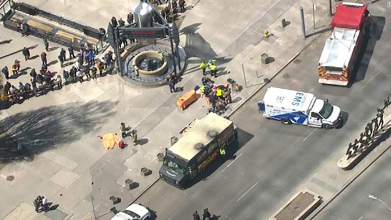 أعلنت الشرطة الكندية أن رجلين لقيا مصرعهما في كندا وأصيب تسعة آخرون من المارة عندما صدمتهم شاحنة الاثنين.