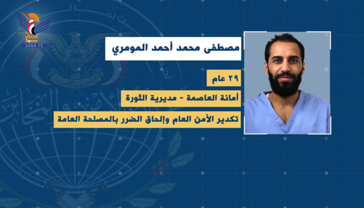 صنعاء…. الإعلام الأمني يذيع الساعة الثالثة عصرا مشاهد الاعترافات لمصطفى المومري وآخرين