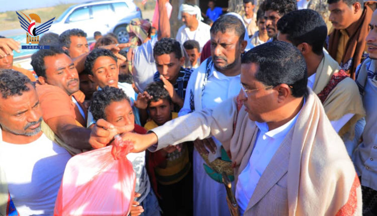 دشن فرع المجلس الأعلى لإدارة وتنسيق الشؤون الإنسانية في محافظة حجة والمجلس المحلي في مديرية عبس اليوم، توزيع وجبة إفطار الصائم في عزلة بني ثواب.