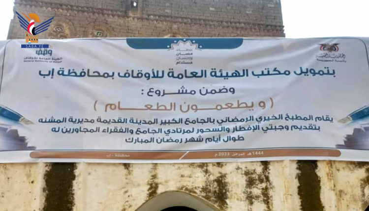 أفق نيوز | دشن مكتب الهيئة العامة للأوقاف بمحافظة إب المطبخ الخيري في الجامع الكبير بمدينة إب القديمة.