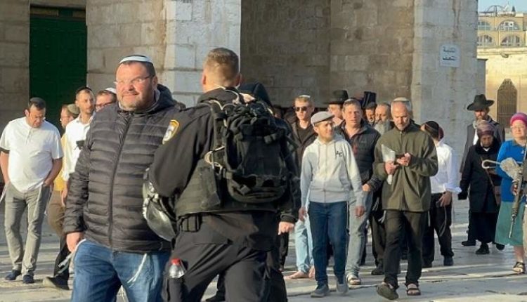 مئات المستوطنين والجنود الصهاينة يدنسون باحات الأقصى الشريف