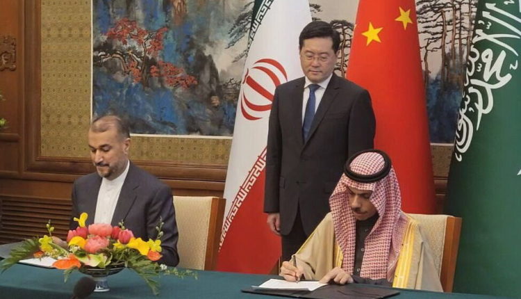 أفق نيوز | وقع وزيرا خارجية إيران والسعودية بيانا مشتركاً اليوم الخميس، بحضور وزير خارجية الصين لتوسيع العلاقات والتعاون الثنائي بين البلدين.