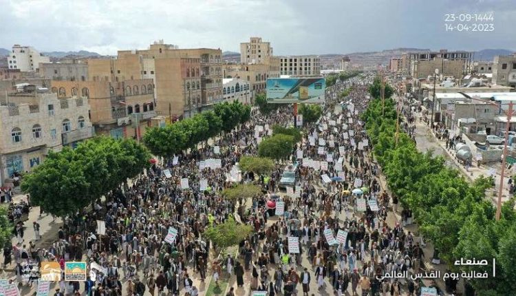 وأوضح مفتي الديار اليمنية أن خروج الشعبي اليمني في يوم القدس العالمي تعبير عن موقفه الثابت والمبدئي تجاه القضية الفلسطينية، لافتا إلى أن خروج اليوم تعبير عن هوية الأمة وارتباط بجذورها ورسالة تأكيد للموقف الداعم والمساند للمرابطين والمجاهدين في فلسطين.