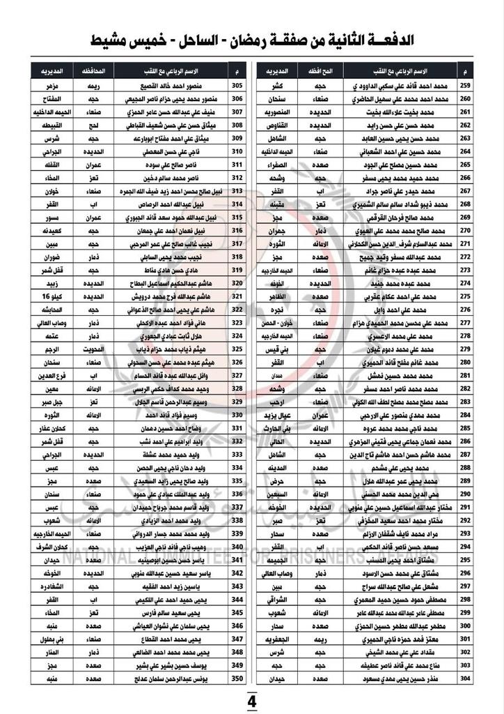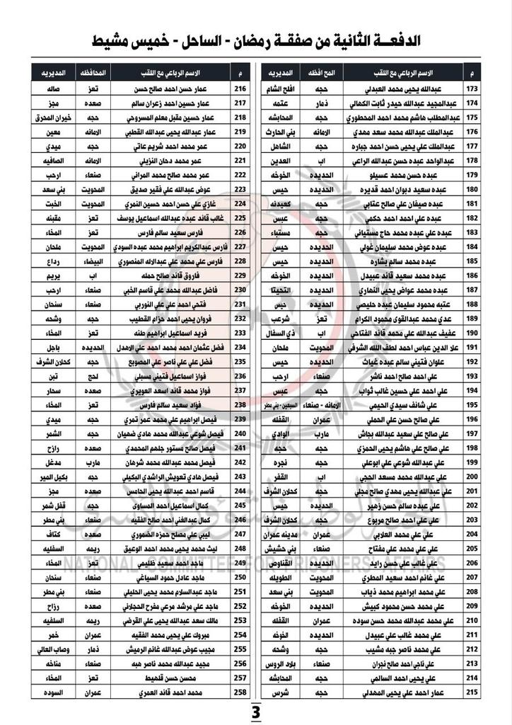 صنعاء تنشر كشوفات الدفعة الثانية من الأسرى الذين سيتم إطلاقهم السبت (قائمة بالأسماء)
