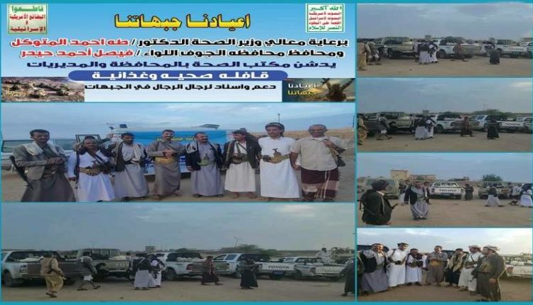 حضر تسيير القافلة نائب مدير مكتب الصحة الدكتور يحيى الدهشاء ومدراء مكاتب الصحة بمديريات الزاهر، والمتون، وخب والشعف وقيادات عسكرية وصحية.