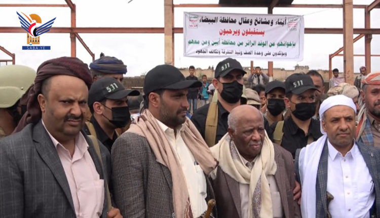 أفق نيوز | استقبل أبناء محافظة البيضاء، اليوم، وفد قبائل محافظتي أبين وشبوة، ومعهم اللواء فيصل رجب، المفرج عنه بتوجيهات من قائد الثورة السيد عبد الملك بدر الدين الحوثي.