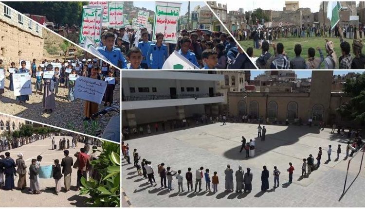 وفي بيان صادر عن الوقفات والمسيرات الطلابية للمراكز والمدارس الصيفية في صنعاء والمحافظات، اليوم السبت، مساندةً لفلسطين، أدان الطلاب بشدة كل الممارسات والعربدة الصهيونية الإرهابية.