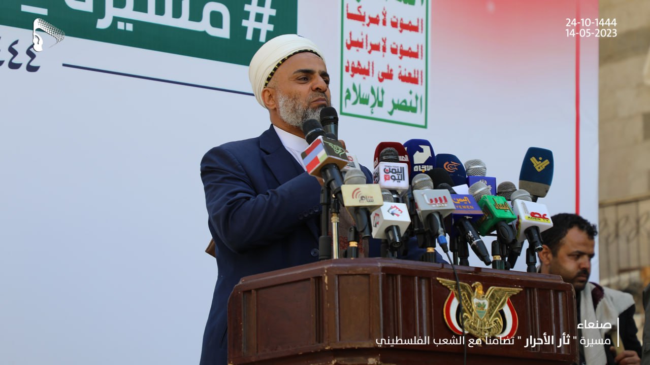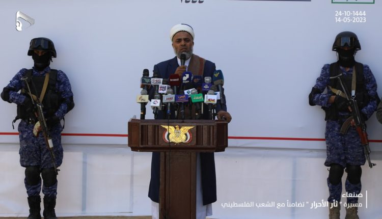 وأكد أن خروج الشعب اليمني على قلب رجلٍ واحدٍ قيادة وحكومة وشعبا، يعبر عن التضامن مع أحرار فلسطين، وأنه لن يتخلى عن الشعب الفلسطيني ولا عن مقدسات المسلمين وبالأخص المسجد الأقصى.