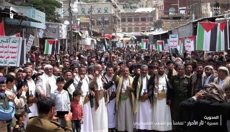 مسيرة حاشدة لأبناء المحويت تضامناً مع الشعب الفلسطيني