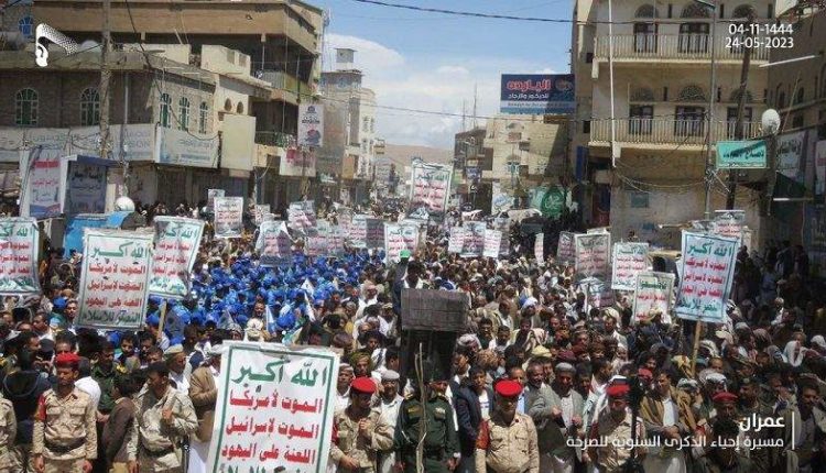شهدت مدينة عمران اليوم الأربعاء، مسيرة جماهيرية إحياءً للذكرى السنوية للصرخة في وجه المستكبرين 1444هـ.