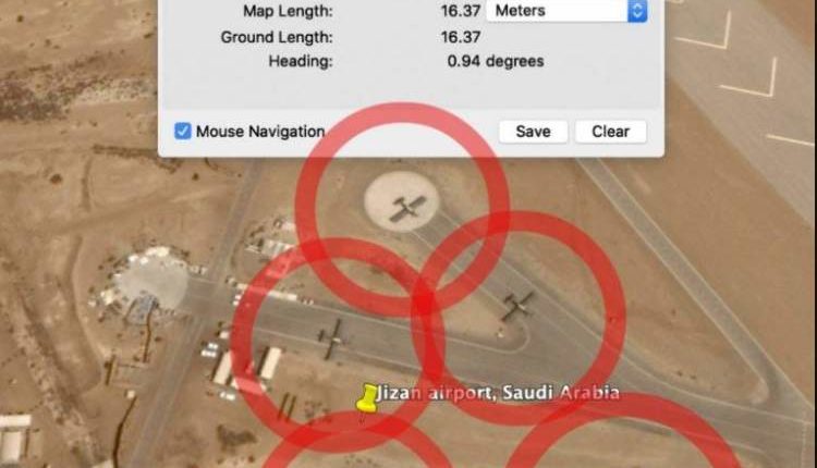 وأضاف أن على سبيل المثال ، تُظهر صور الأقمار الصناعية من 2018 و 2019 الطائرات في قاعدة جيزان في السعودية ، أي على بعد 50 كيلومتراً من الحدود مع اليمن.. وبحسب مجموعة جين للمعلومات ، منحت السعودية حلفائها في الإمارات الحق في استخدام جيزان كقاعدة لعمليات الطيران اليمنية.