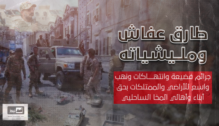 طارق عفاش ومليشياته: جرائم فضيعة وانتهاكات ونهب واسع للأراضي والممتلكات بحق أبناء وأهالي المخا الساحلية