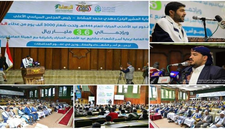 دشنت الهيئة العامة لرعاية أسر الشهداء بالشراكة مع الهيئة العامة للزكاة مشاريع عيد الأضحى المبارك لجميع أسر الشهداء والمفقودين في عموم المحافظات بإجمالي ثلاثة مليارات و600 مليون ريال.