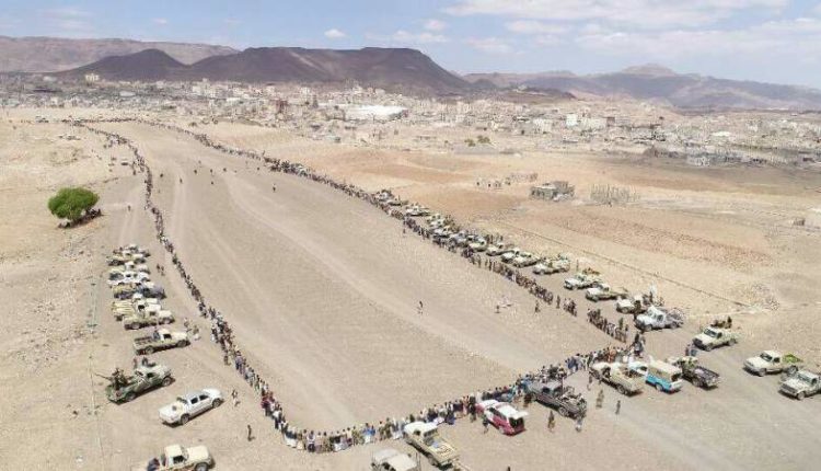 أفق نيوز | خرجت قبيلة سنحان، اليوم الخميس، في وقفة مسلحة كبرى بعرض عسكري قبلي تأكيدا للجهوزية ورفد الجبهات بالمال والرجال.