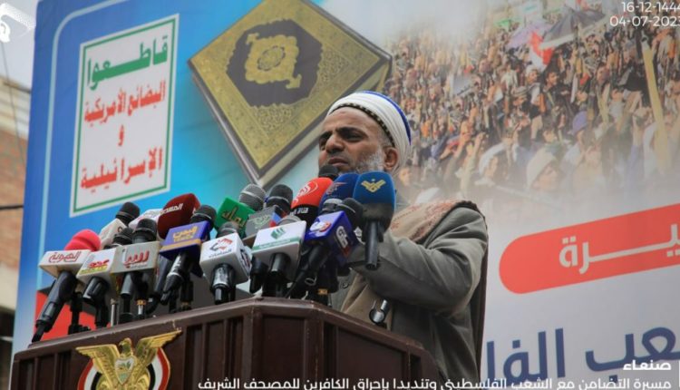 جاء ذلك خلال كلمة لهُ، في المسيرة التي خرجت عصر اليوم الثلاثاء، بعنوان التضامن مع فلسطين والتنديد بحرق المصحف الشريف في السويد.