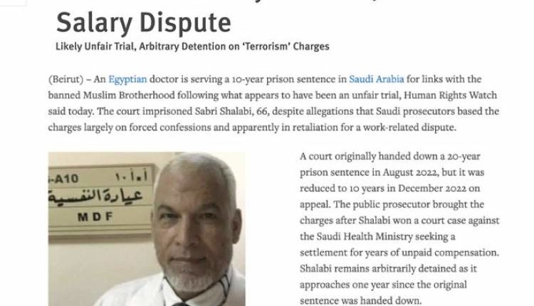 أفق نيوز | انتقدت هيومن رايتس ووتش سجن السلطات السعودية لطبيب مصري 10 سنوات في محاكمة جائرة على خلفية مطالبته تسليم رواتبه.