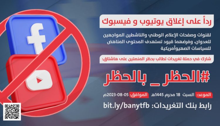 واعتبرت قيام تلك الشركات والمنصات الاعلامية الغربية بإغلاق قنوات الاعلام اليمني المقاوم مصادرة للحريات وتكميم للأفواه، وانتهاكا سافرا لحقوق الانسان اليمني وحرياته الأساسية ومحاولة للتستر على جرائم وانتهاكات العدوان على اليمن ومنع وصول صوت الشعب اليمني المظلوم إلى العالم.