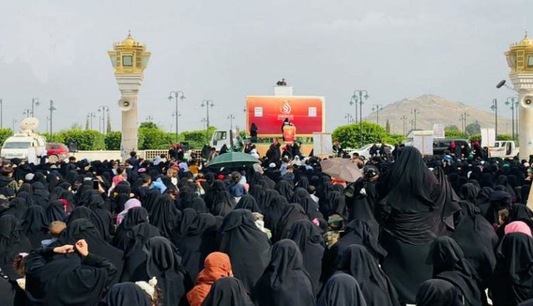 نظمت الهيئة النسائية بأمانة العاصمة, السبت، مسيرة حاشدة في جامع الشعب إحياء لذكرى استشهاد الإمام زيد بن علي عليهما السلام تحت شعار ”بصيرة وجهاد”.