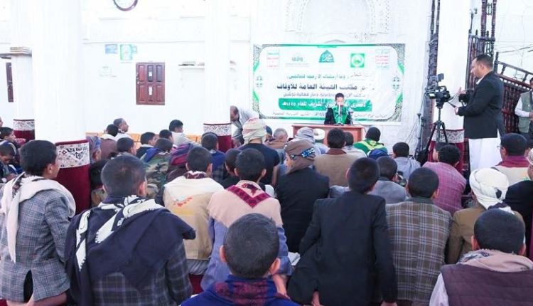 وخلال الفعالية، شدد مدير مكتب الهيئة العامة للأوقاف عبدالله محمد الجرموزي، أهمية إحياء ذكرى المولد النبوي، للتأكيد على علاقة الشعب اليمني برسول الرحمة صلوات الله عليه وعلى آله وسلم.