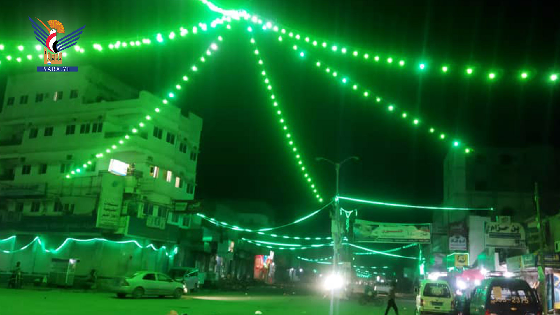 ومنذ ثلاثة أسابيع تقام يوميا عشرات الأمسيات الاحتفالية، في كافة حارات ومربعات مدينة الحديدة ومديريات المحافظة، ابتهاجا بالمناسبة كمحطة ايمانيه وتعبوية مهمة باتجاه تعزيز الصمود وتعميق الارتباط برسول البشرية صلوات الله عليه وآله.