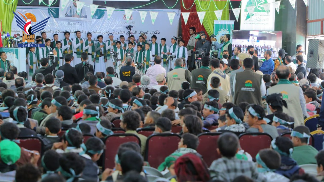 وقال “بمناسبة استعداد شعبنا لاستقبال المولد النبوي الشريف، سعداء ومسرورين أننا بين شريحة الأيتام بدار رعاية الأيتام بصنعاء، تغمرنا السعادة ونحن بينكم، ندشن من هنا ميلاد رسول الرحمة أبو الأيتام والفقراء والمساكين محمد صلى الله عليه وآله وسلم”.