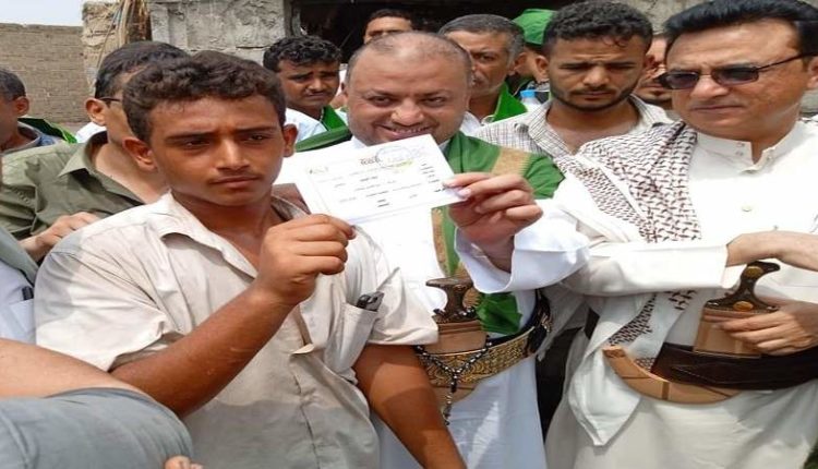 أفق نيوز | دشن نائب رئيس الوزراء لشئون الخدمات والتنمية الدكتور حسين مقبولي ومحافظ الحديدة محمد قحيم، توزيع كروت على المستفيدين من مشروع ترميم وإعادة تأهيل المنازل المتضررة جراء العدوان في مديرية الدريهمي، بتمويل من الهيئة العامة الزكاة.
