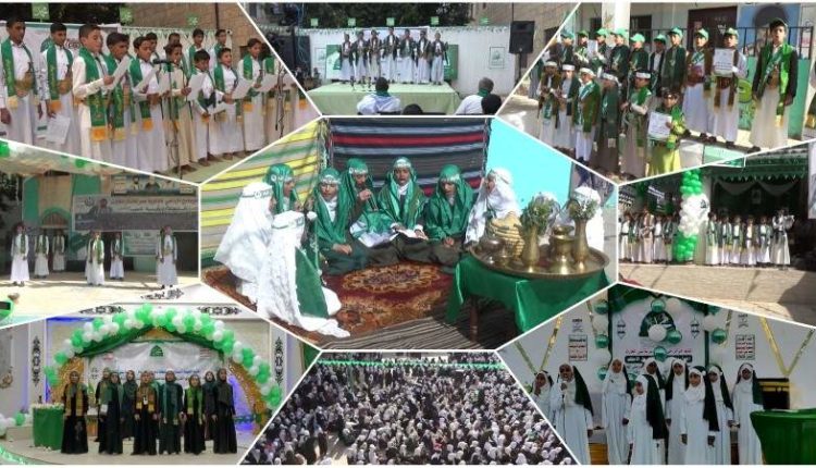 إلى ذلك، شهدت مدارس العاصمة صنعاء زخما واسعا احتفاء بقدوم المولد النبوي الشريف، ففي مدرسة تحفيظ القرآن الكريم بأمانة العاصمة نظمت فعالية ثقافية بحضور رسمي ومشاركة واسعة تخللها فقرات متنوعة عرفت بأهمية إحياء المناسبة وجسدت عشقا بالرسول الأكرم صلى الله عليه وآله وسلم.