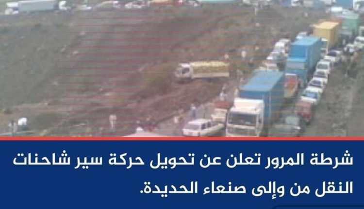 شرطة المرور تعلن عن تحويل حركة سير شاحنات النقل من وإلى صنعاء الحديدة