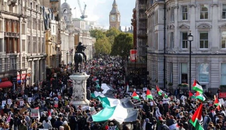 شهدت مدينة لندن السبت، تظاهرة حاشدة، تضامناً من الشعب الفلسطيني، تنديداً بالعدوان الإسرائيلي المتواصل على غزة.