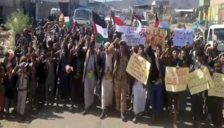 مسيرة في مديرية المدان بعمران تنديداً بالجرائم الصهيونية في قطاع غزة