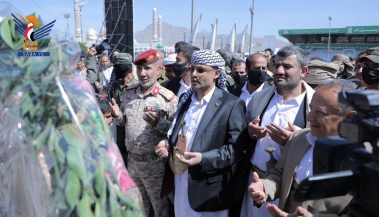 وأكد الرئيس المشاط أن تضحيات الشهداء ملهمة لجميع أبناء الشعب اليمني لاستمرار الصمود والثبات والسير على خطاهم في درب الحرية والكرامة، حتى تحقيق النصر على العدوان وأدواته وتطهير كامل التراب اليمني من الغزاة والمحتلين الجدد.