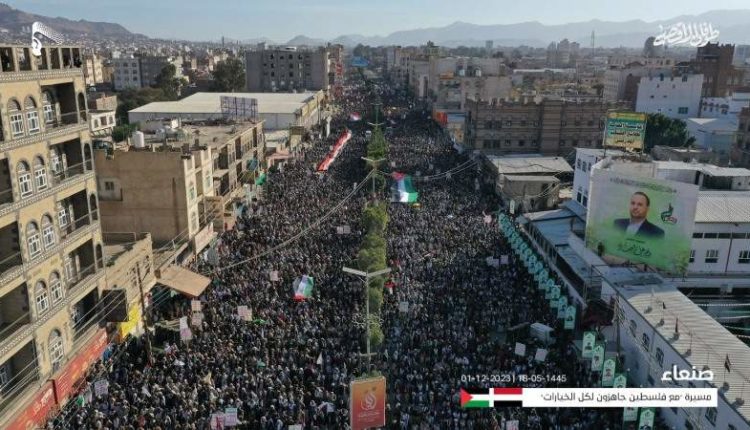 طوفان بشري ثامن بصنعاء بعنوان (مع فلسطين.. جاهزون لكل الخيارات)