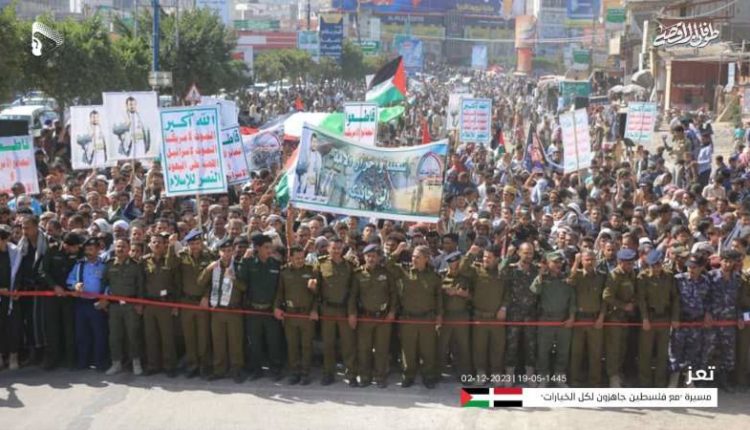 مسيرة حاشدة بتعز دعما للشعب والمقاومة الفلسطينية