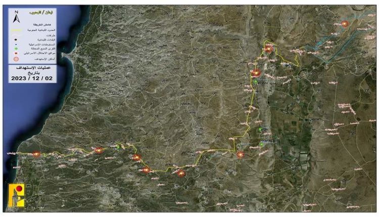 ملخص عمليات المقاومة الإسلامية ضد مواقع وانتشار جيش العدو الإسرائيلي عند الحدود اللبنانية الفلسطينية بتاريخ 2-12-2023: