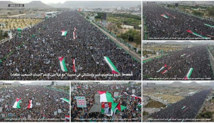 وفي الأول من ديسمبر احتشد اليمانيون في طوفان بشري ثامن بالعاصمة صنعاء، فيما كان الطوفان التاسع في الـ8 من ديسمبر الجاري أيضا، فضلاً عن مئات المسيرات والتظاهرات في مختلف المحافظات اليمنية على مدى الأسابيع الماضية منذ الإعلان عن معركة طوفان الأقصى.