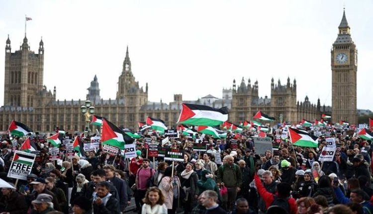 ومنذ 14 أكتوبر الماضي، تشهد لندن كل سبت مظاهرات تضامنية مع الشعب الفلسطيني تنديداً بالهجمات الصهيونية على غزة، للأسبوع العاشر.