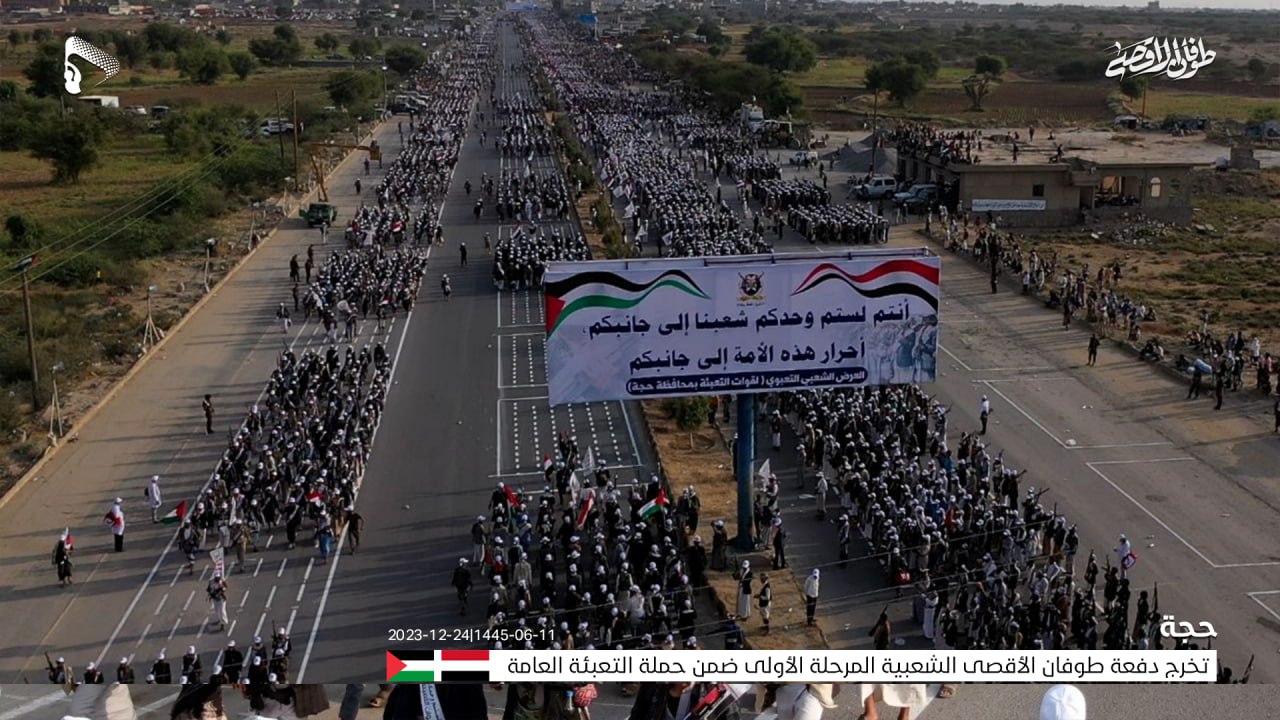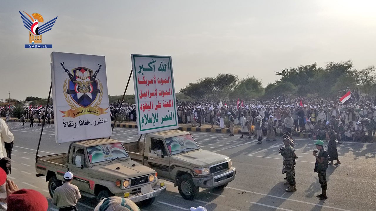ولفت محمد علي الحوثي إلى أن قبائل وأبناء حجة خرجوا اليوم استجابة لتوجيهات قائد الثورة؛ نصرة للأقصى، ولم يخرجوا للتجمهر والاستعراض بل لإعلان الجهوزية لخوض غمار الموت؛ دعما وإسنادا للمقاومة الفلسطينية الباسلة.
