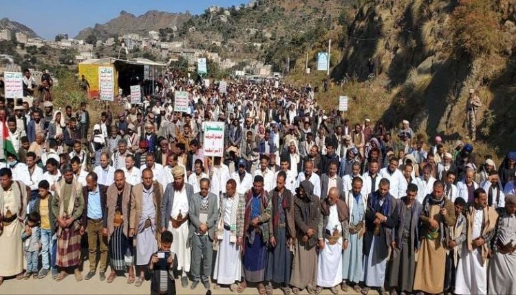 مسيرة حاشدة في عتمة بذمار تنديداً بالاعتداء على القوات البحرية