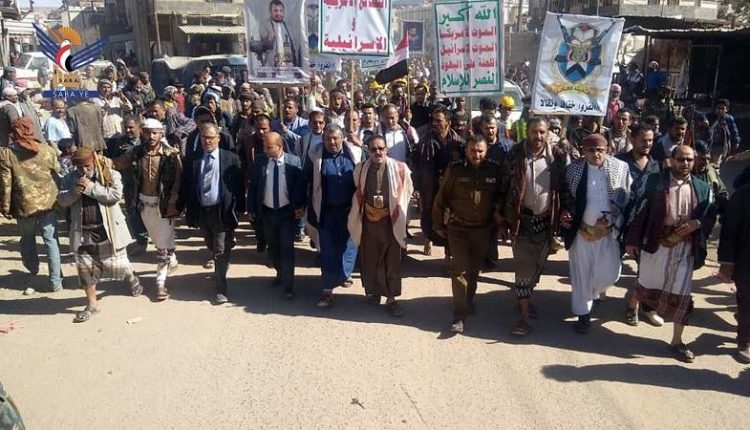 أفق نيوز | شهدت مديريات جبن وقعطبة والحشاء في محافظة الضالع اليوم السبت، مسيرات ووقفات جماهيرية حاشدة نصرة للشعب والمقاومة الفلسطينية وترسيخا للهوية الإيمانية، تحت شعار “الفتح الموعود والجهاد المقدس”.