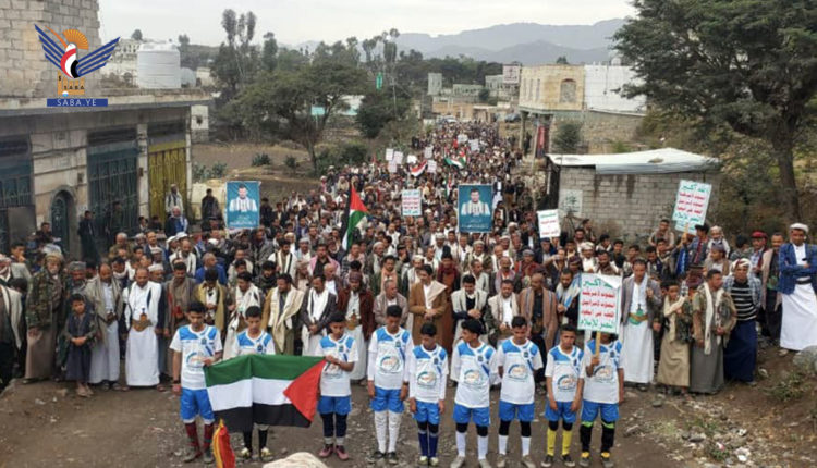 وخلال المسيرات واللقاءات ردد المشاركون الشعارات والهتافات المنددة بالعدوان على اليمن والمؤكدة، أن أمريكا هي الراعية والداعمة للإرهاب العالمي، والاستمرار في دعم ومناصرة الشعب الفلسطيني.. مؤكدين تفويض القيادة الثورية في اتخاذ الإجراءات المناسبة بشأن ردع العدوان ومساندة الشعب الفلسطيني.