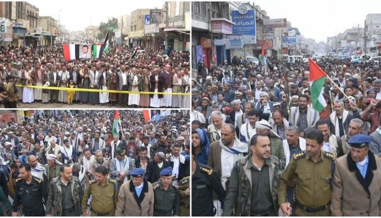 مسيرة حاشدة لأبناء المربع الشمالي بمحافظة إب نصرةً للشعب الفلسطيني