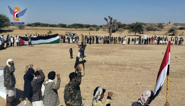 وقفة مسلحة لأبناء مديرية العبدية تأكيدا على الجهوزية وتضامنا مع غزة